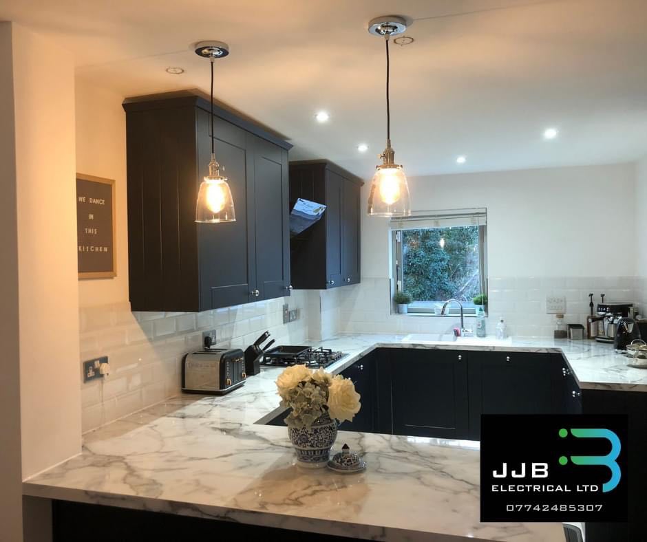Here is a photo of a Kitchen lighting and electrics installation that we carried out in Hertfordshire.